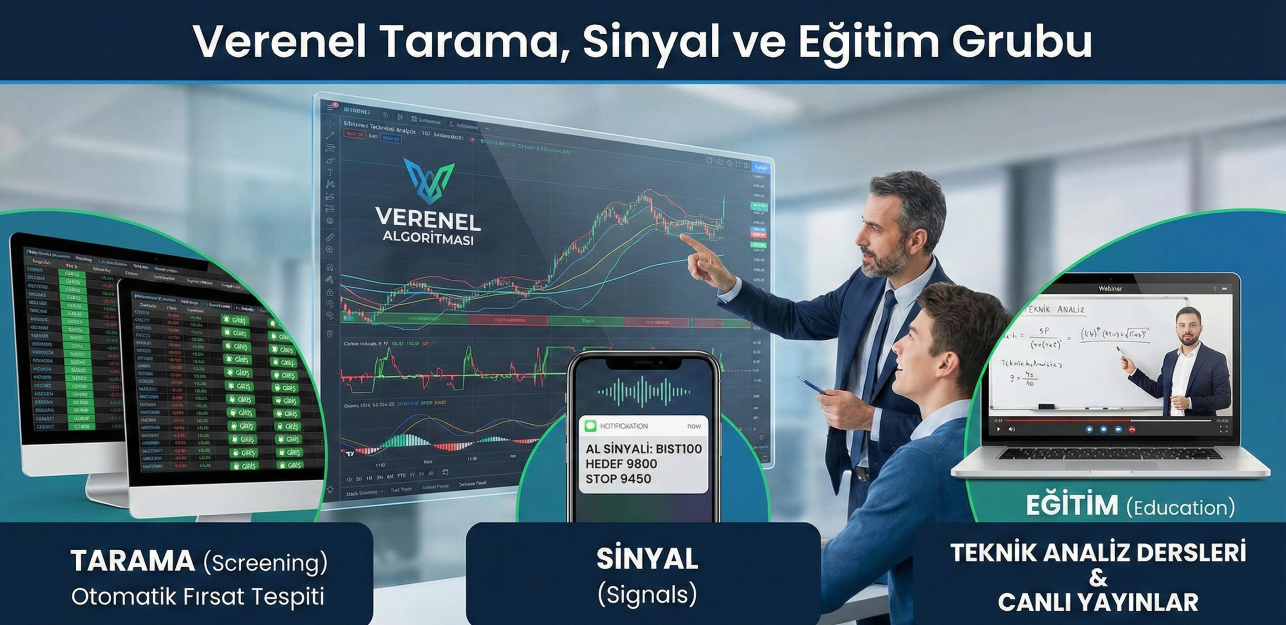 Verenel Tarama, Sinyal ve Eğitim Grubu, genellikle teknik analiz uzman ekip tarafından yönetilen, finansal piyasalarda (Borsa İstanbul, Kripto Para, Forex vb.) işlem yapan yatırımcılara yönelik profesyonel bir destek hizmetidir.